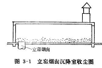 采用沉降室時(shí),通常將它布置在立窯廠房的頂部或旁邊,如圖所示。沉降室的除塵效率除與顆粒本身的重度和直徑有關(guān)外(重度和直徑越大效果越好),還取決于粉塵(或氣體)的流動(dòng)速度,以及沉降室的橫截面積和長(zhǎng)度。氣體在沉降室內(nèi)的流動(dòng)速度,一般可取0.3-0.5來(lái)/秒,停留時(shí)間要求30-60秒。氣流速度越低,沉降室長(zhǎng)度越長(zhǎng),則除塵效率越高。但是,由于窯上空間的限制,沉降室的體積不能建得很大。所以,一般沉降室的效率比較低,僅能沉降0.2毫來(lái)以上的粗顆粒。