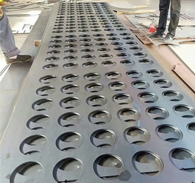 除塵器花板除承受濾袋和袋籠的重量外,還要承受除塵器內(nèi)的氣體壓力,所以要有足夠的剛度.如果稍有變形,就可能影響濾袋和花板孔間的密封效果.花板的鋼板厚度一般為4~6mm,主要取決于過濾室內(nèi)懸掛除塵器濾袋的數(shù)量.為增加花板的剛度,花板上應(yīng)增設(shè)加強(qiáng)筋.花板外觀應(yīng)平整、光潔,不應(yīng)有翹曲或凹凸不平等缺陷,其平面度偏差不大于花板長度的2/1000.花板孔的加工應(yīng)采用沖孔或采用等離子切割,不允許采用氣割。