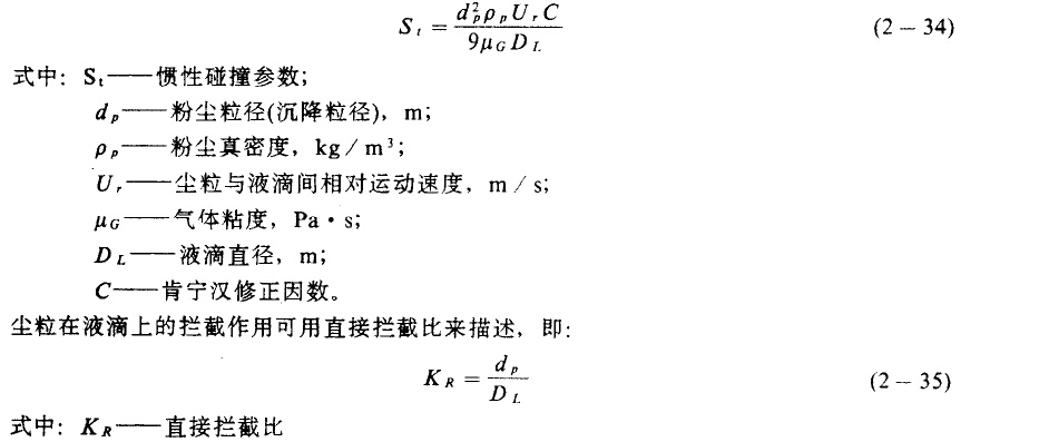 可見,慣性碰撞主要取決于塵粒質(zhì)量及其與液滴之間的相對運(yùn)動(dòng)速度,攔截主要取決于粒徑大小。兩者皆與液滴大小有重要關(guān)系一般是液滴小時(shí),慣性碰撞和攔截作用皆增強(qiáng)。